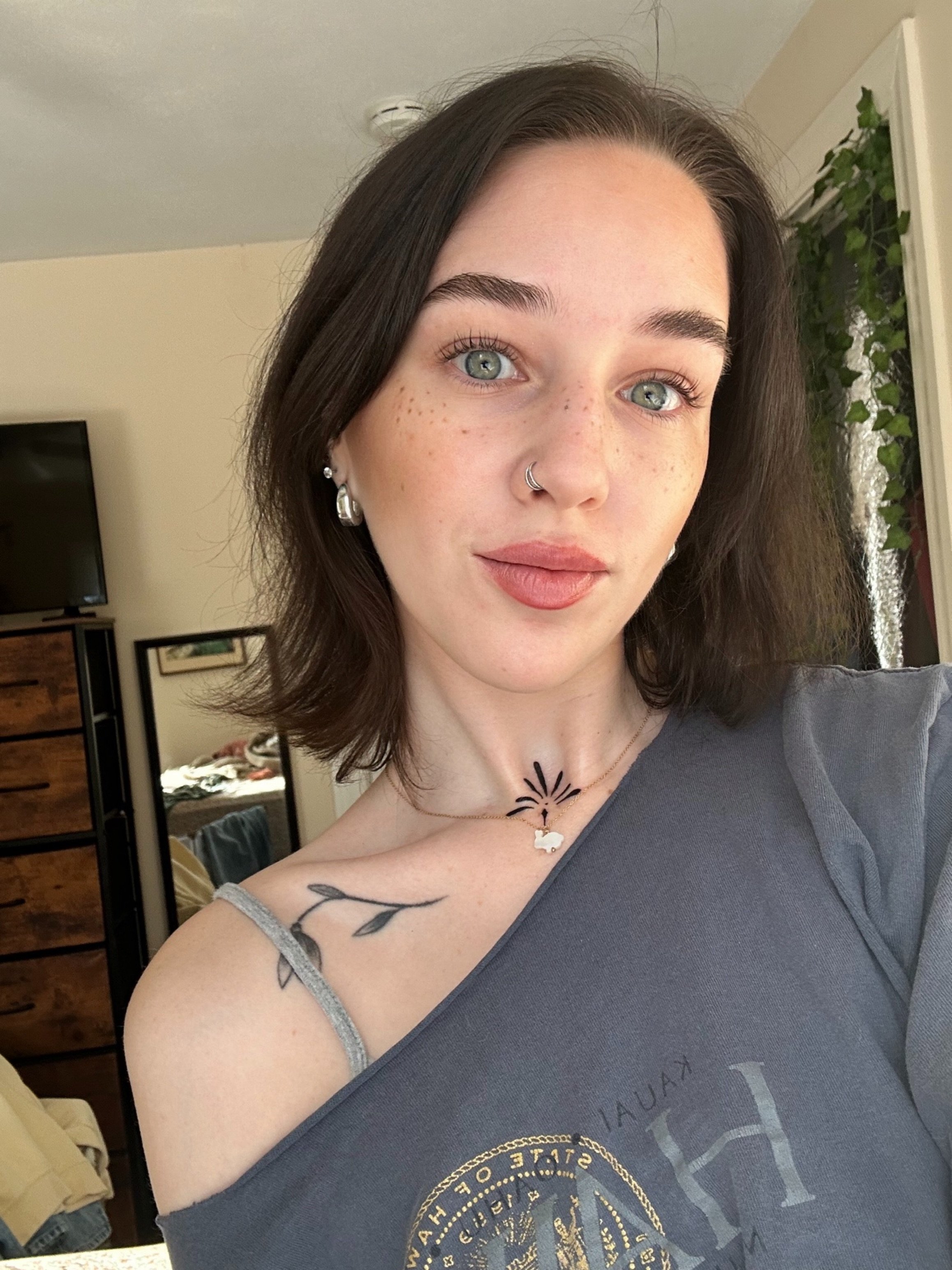 Hand poke tattoos are ideal for delicate line work, minimalist symbols, and other intimate designs. Skyelar is almost done with her tattoo apprenticeship, but has been creating hand poke tattoos for over 2 years. She specializes in custom flash and client‑led designs, focusing on safety, aftercare, and long‑lasting results.